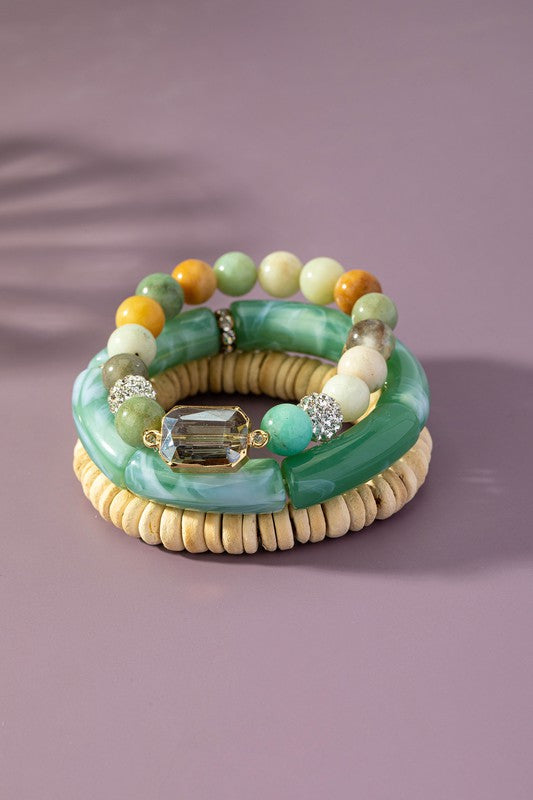 1. amazonite bead, pave rhinestone ball and smoky crystal bead bracelet,