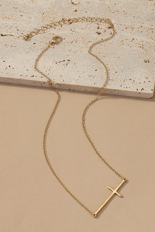 Hammered Sideways Cross Necklace