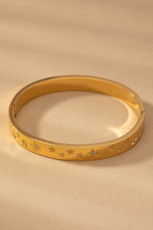 Waterproof stainless steel engraved star hinge bangle with AAA+ CZ stones