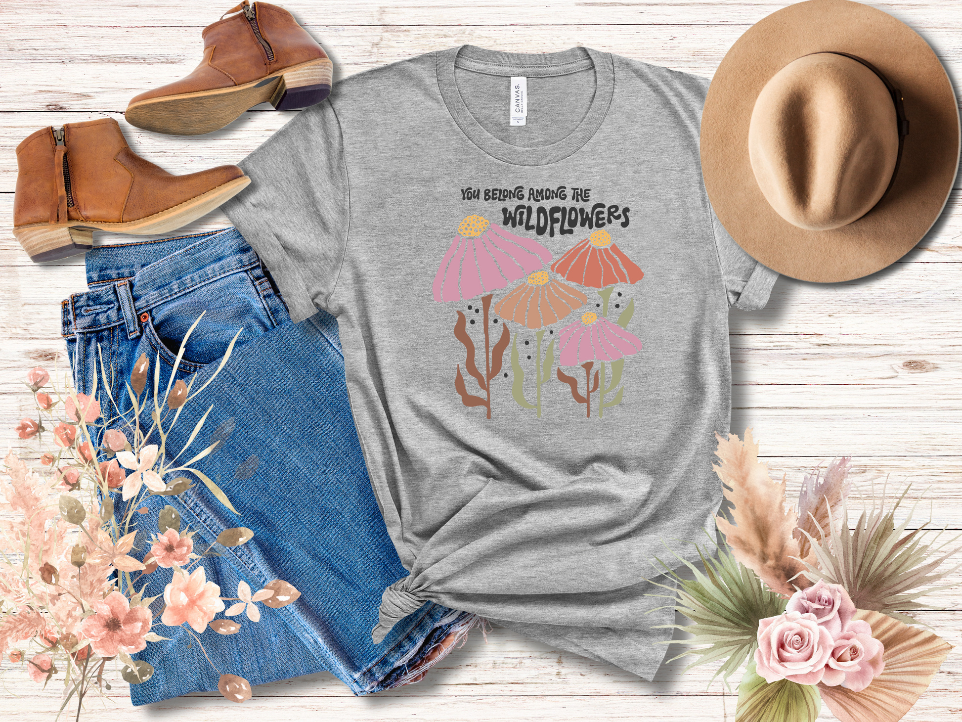 You belong Among the Wildflowers! Welcome summer in this casual and stylish graphic tee that speaks to your free spirit. Show off your unique style with this comfy, vibrant statement piece!