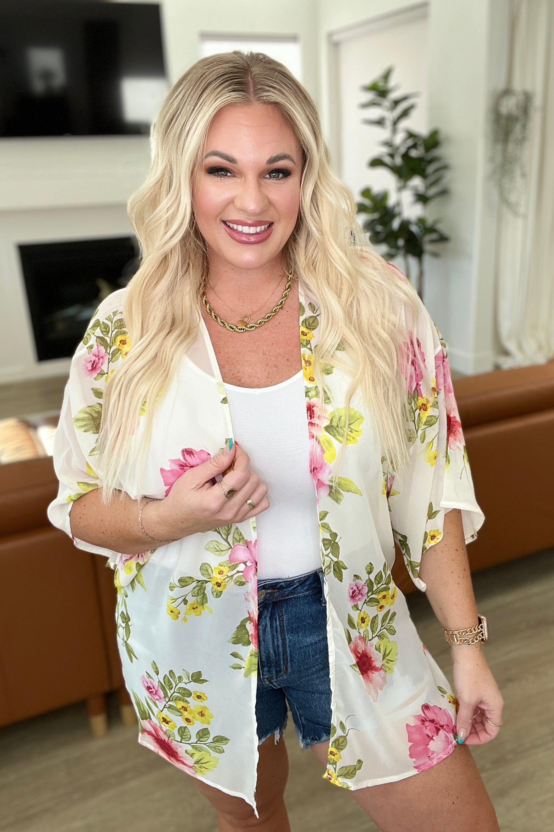 Yeah, We Did That Floral Kimono in Ivory